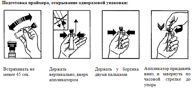 2. После тщательной просушки чистым аппликатором набирает небольшое количество состава и наносит равномерным слоем.