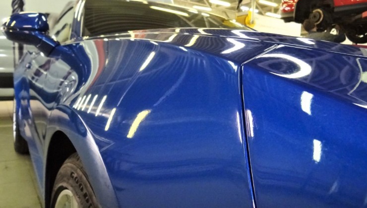Применяется мокрый метод, при котором пленка наносится на влажную поверхность, принимает точную форму кузова и приклеивается к покрытию.